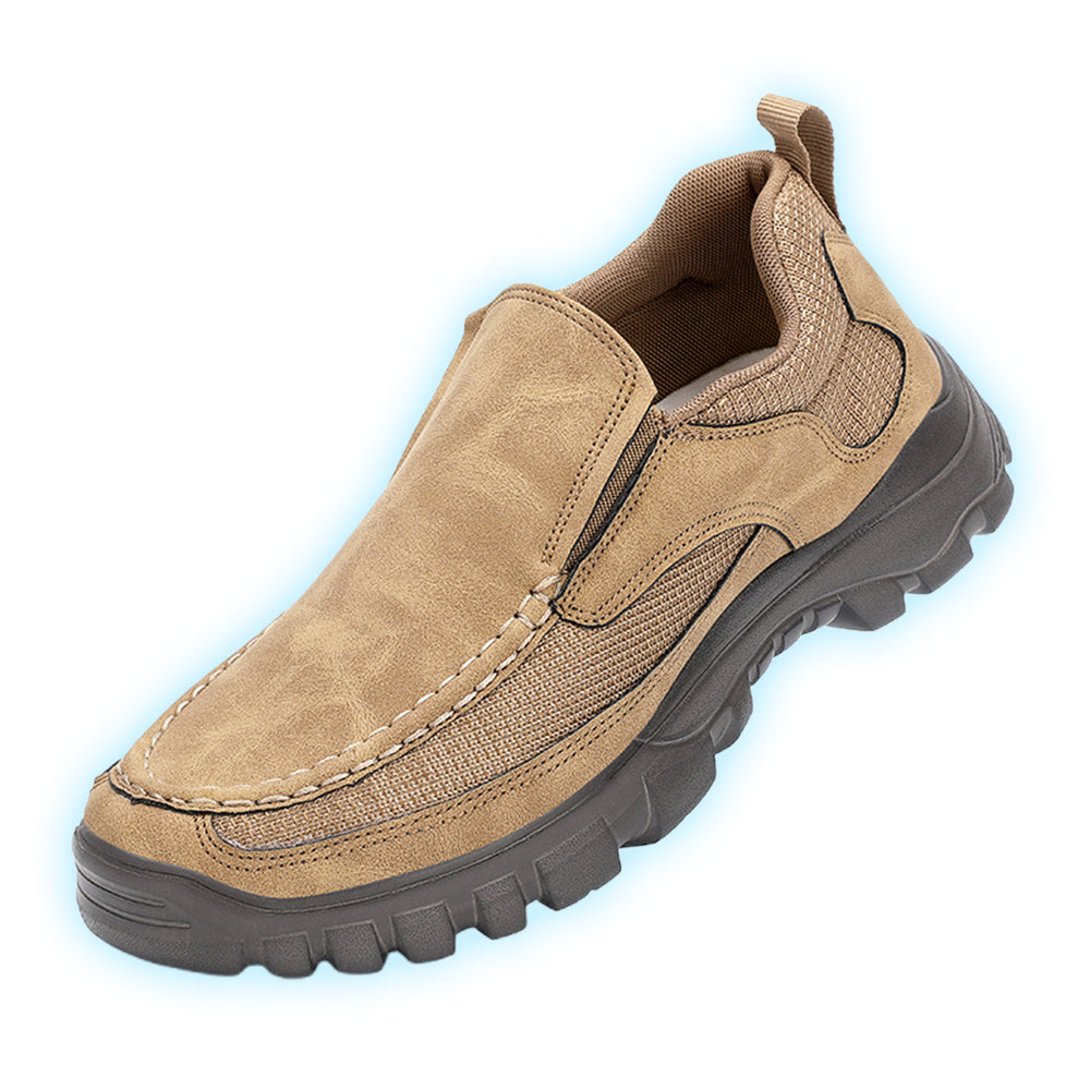 Rugged durability meets sleek design in these slip-on shoes, featuring sturdy stitching and breathable mesh panels for added versatility. A thick, grooved sole provides exceptional traction and support, ensuring comfort and performance for both urban and outdoor adventures