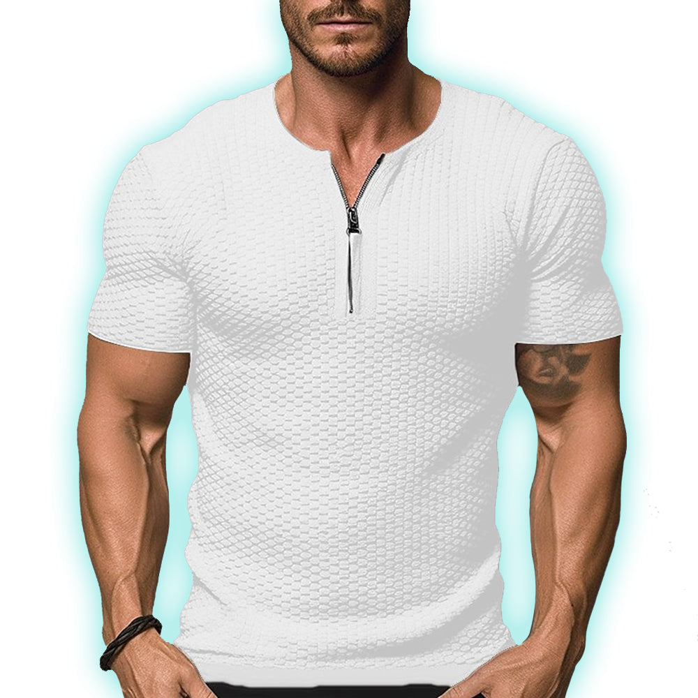 Crafted from a stretch-infused cotton fabric, the shirt sports functional sleeves and a quarter-zip collar for a timeless finish that transcends seasons.