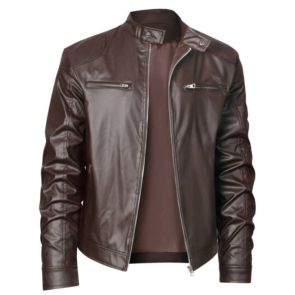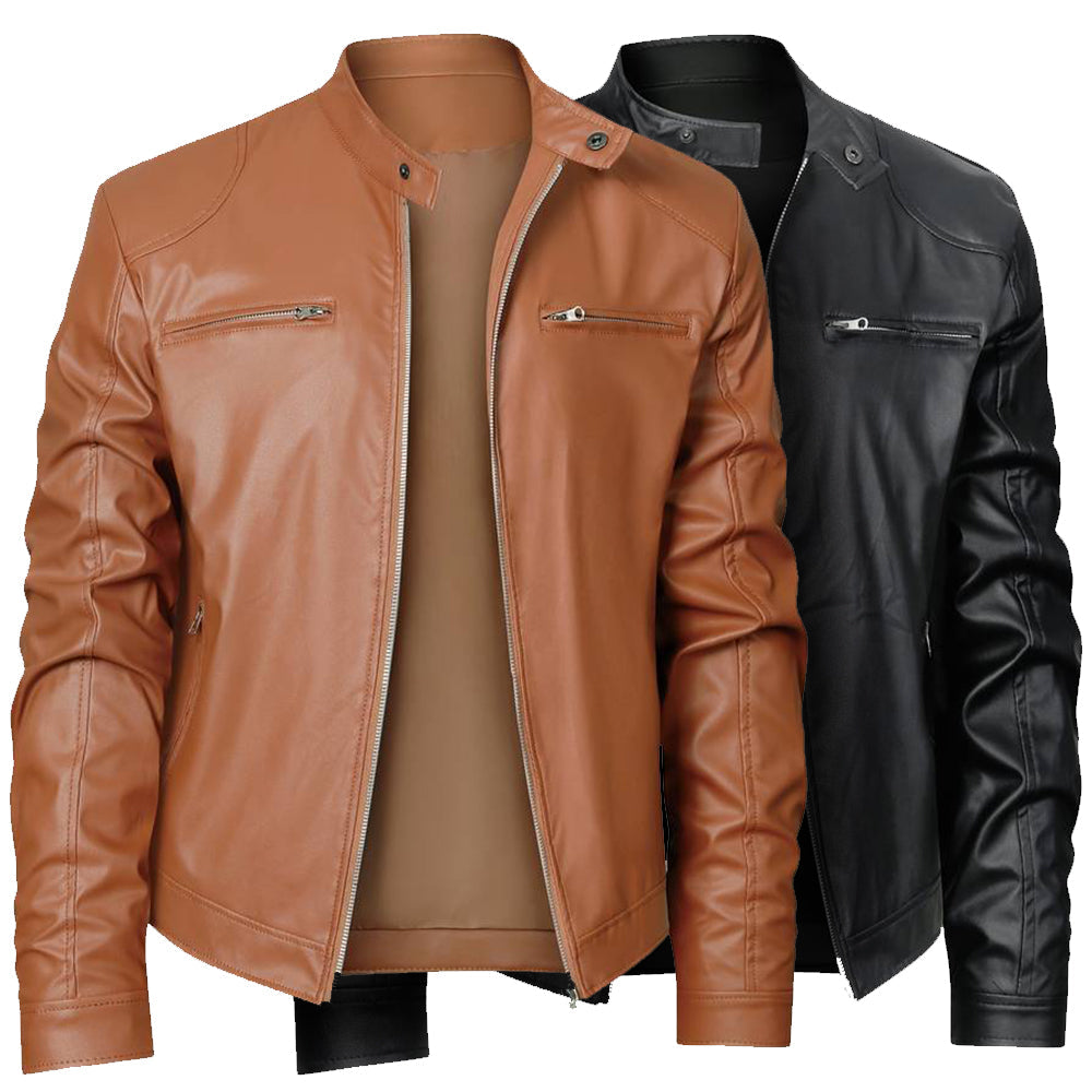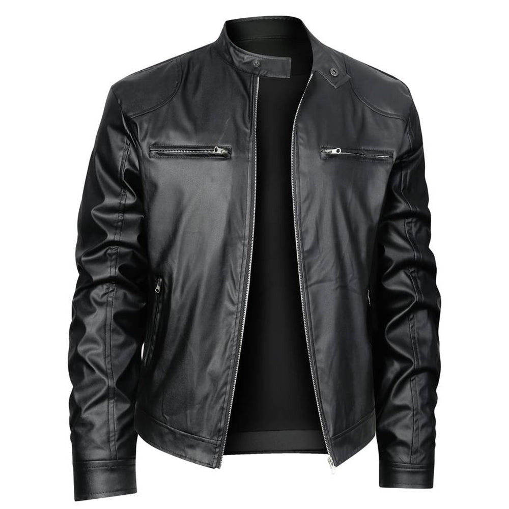 Imagined in refined PU leather, this modern essential boasts a comfortable and breathable fit, adorned with a handsome collar and a zipper closure.