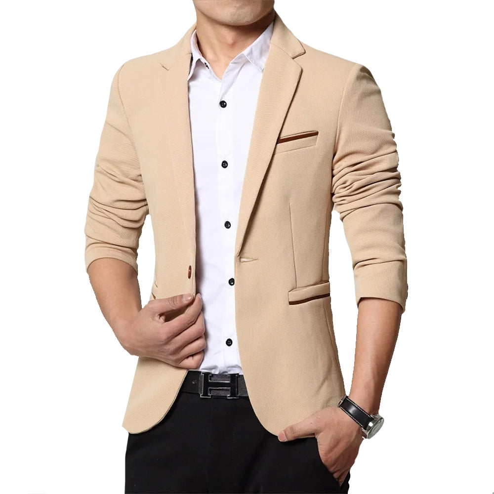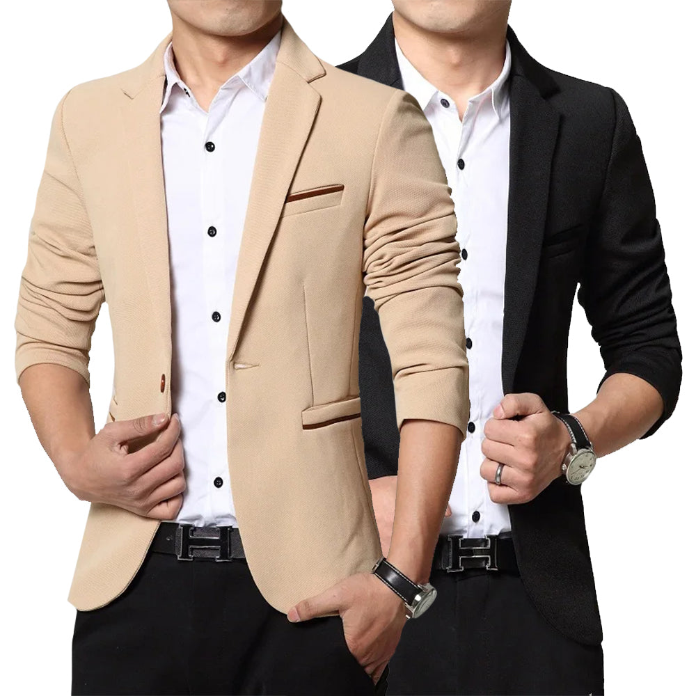 The double-pocket front and prestigious notched lapels add the finishing touch to this contemporary piece.