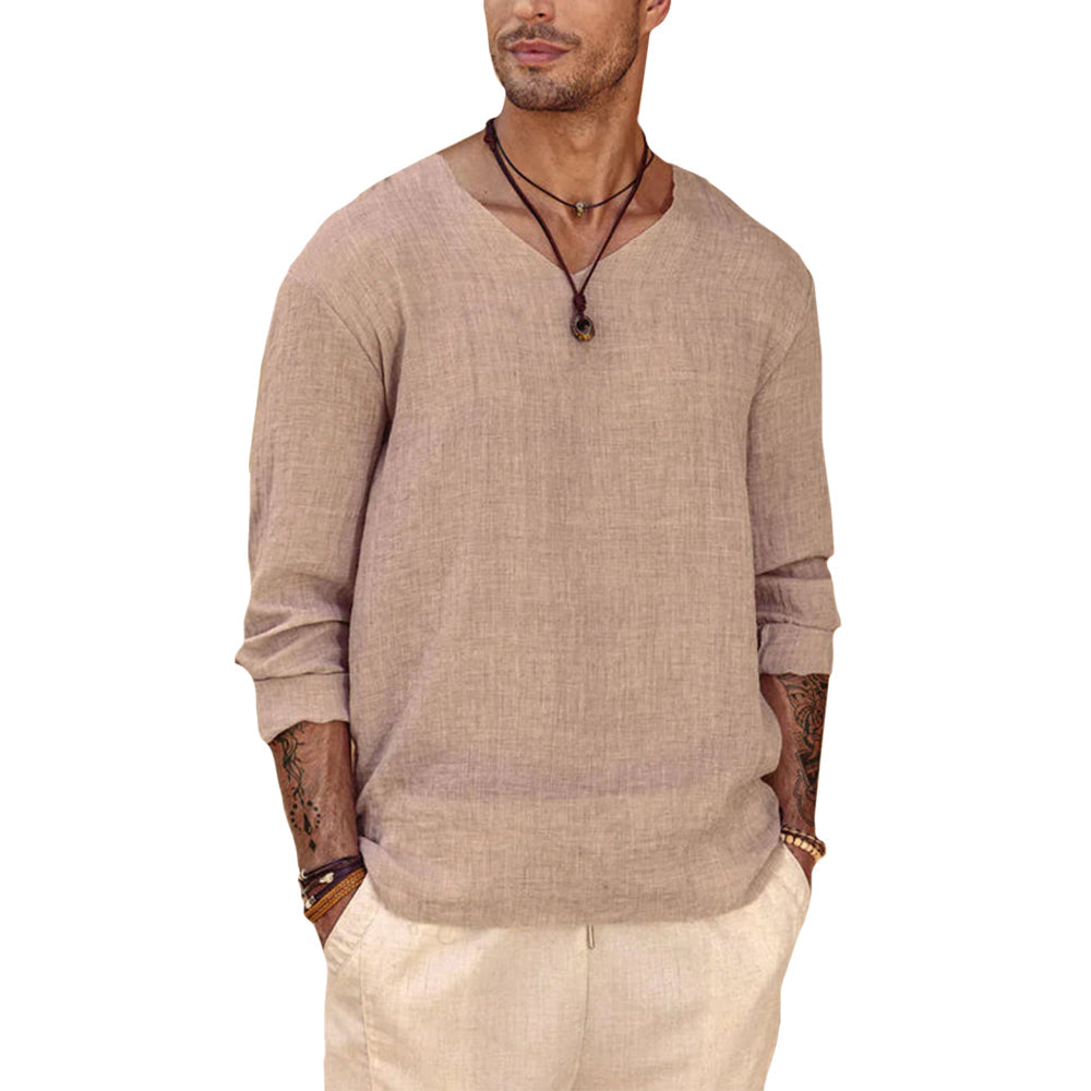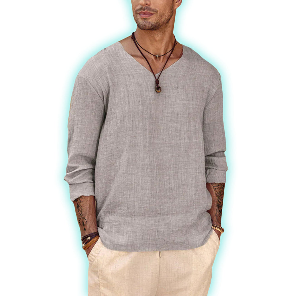 Discover the artistry of effortless elegance with our linen shirt, adorned with intricate V-neckline that adds a touch of rustic charm and timeless sophistication to the ensemble.