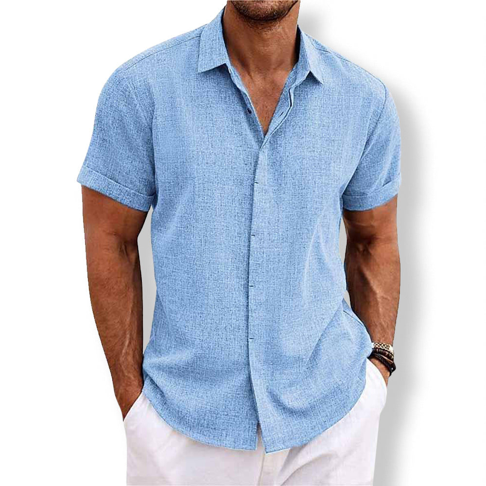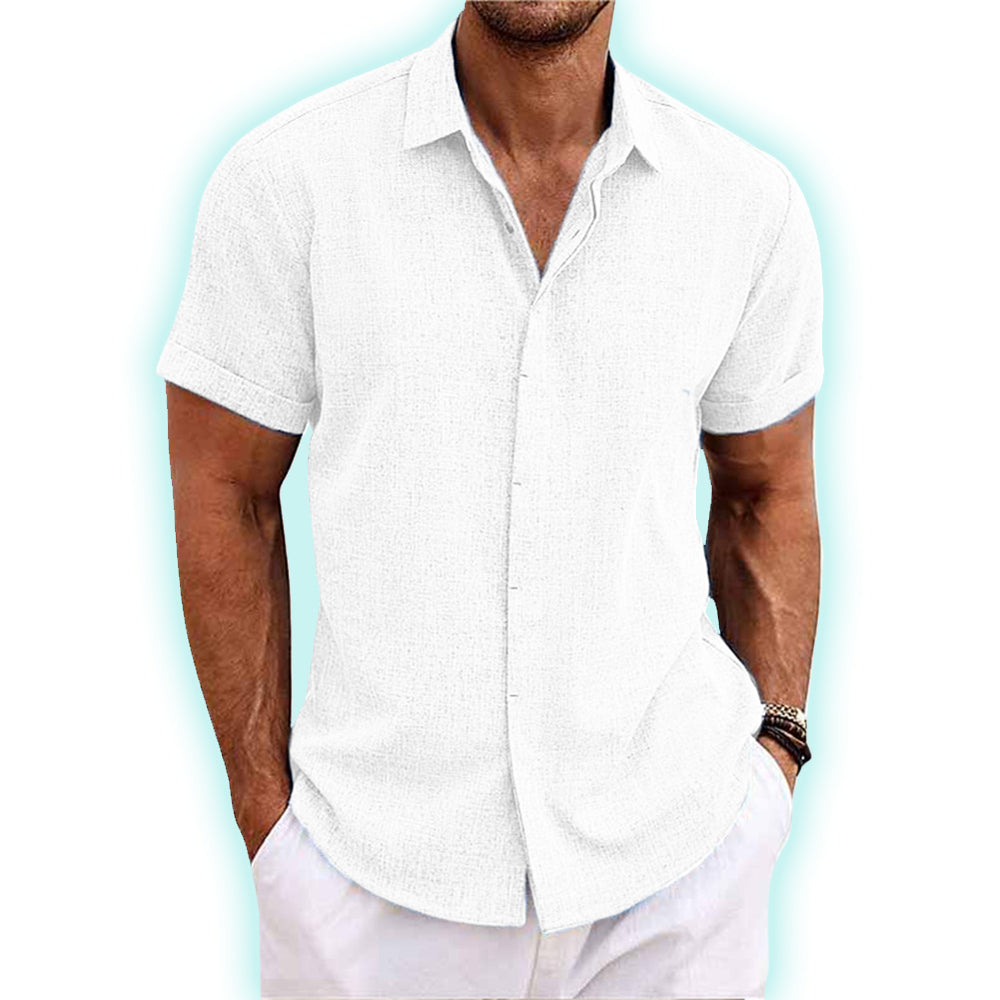 Indulge in optimal comfort with this well-crafted cotton-linen shirt that offers unparalleled attention to detail and a classic design that's sure to catch eyes every time it's worn. Crafted with a sophisticated air, this staple exudes effortless elegance for any occasion -from a relaxed weekend to a usual day at the office.