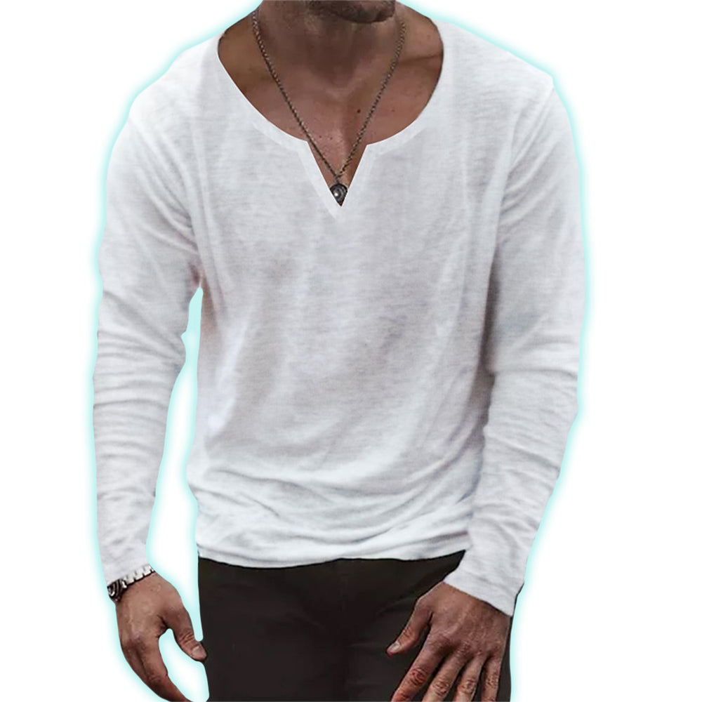 Imagined in a timeless solid color design, this basic pullover boasts a unique V-neckline and a relaxed fit.