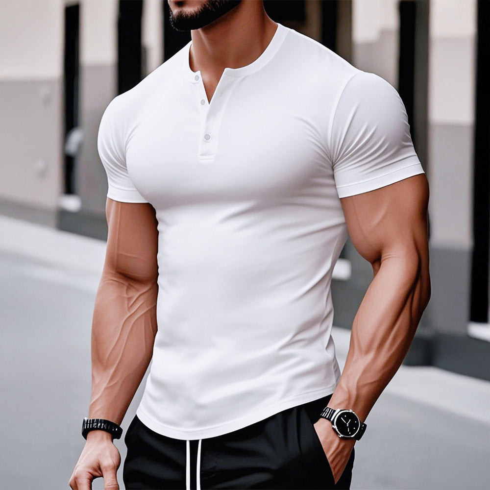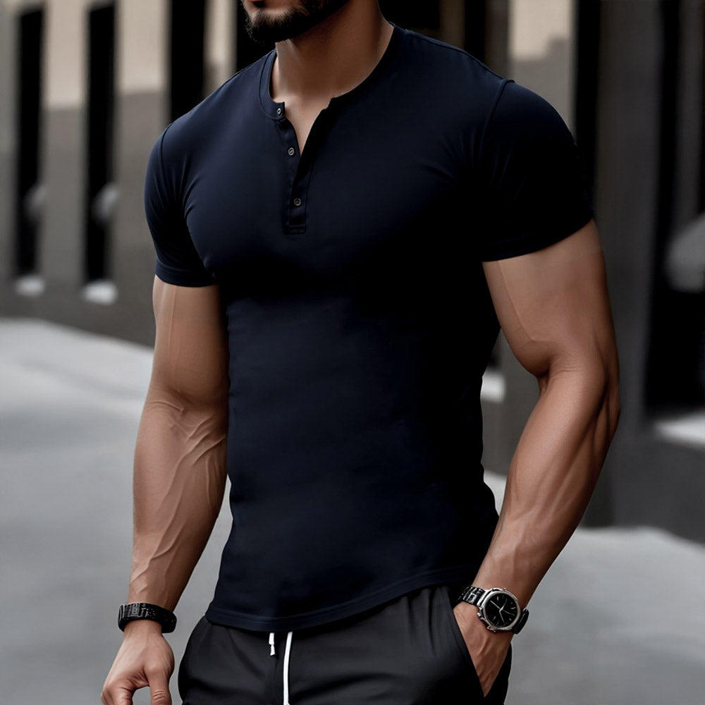 Crafted from ultra-soft stretch fabric, this handsome tee sculpts the physique with ease. A refined staple for modern wardrobes, it delivers tailored comfort with a sleek neckline and clean silhouette, perfect under a blazer or on its own under summer skies.