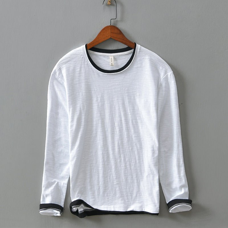 Elevated in simplicity, refined in texture, this pure cotton essential reimagines the everyday shirt with contrast trim accents and a luxuriously soft hand-feel. Understated, yet unmistakably premium.