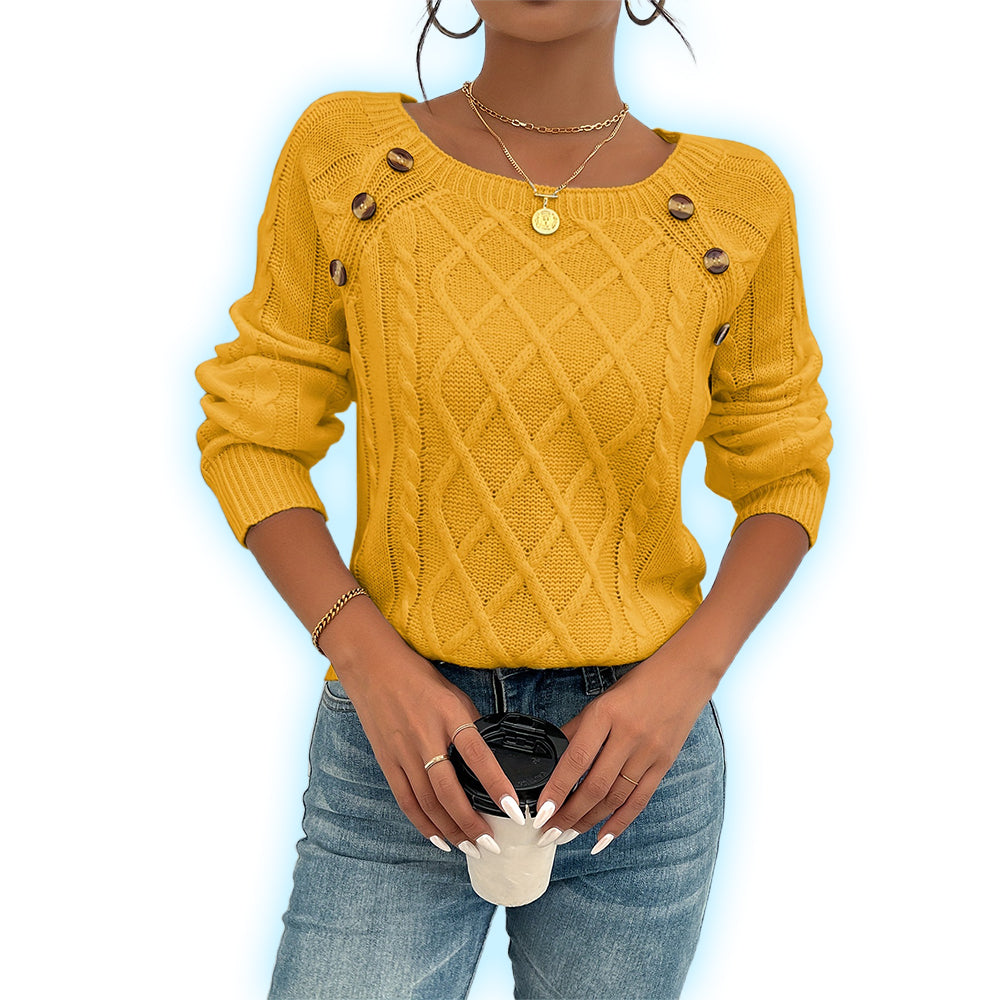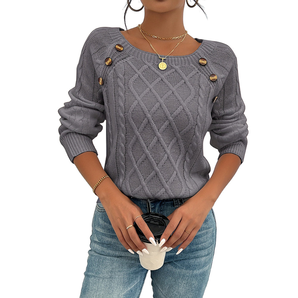 Bold diamond-knit texture meets intricate button accents along the neckline for a touch of effortless charm. A relaxed fit ensures all-day comfort while offering versatile styling options. Perfect for casual outings or elevating everyday ensembles.