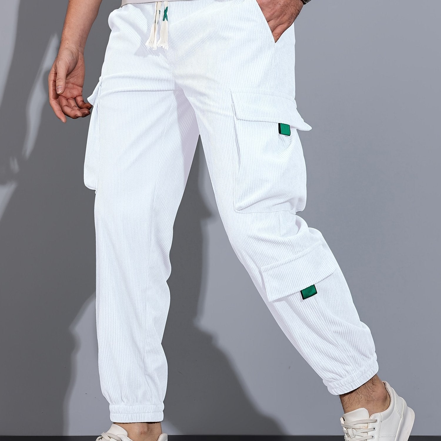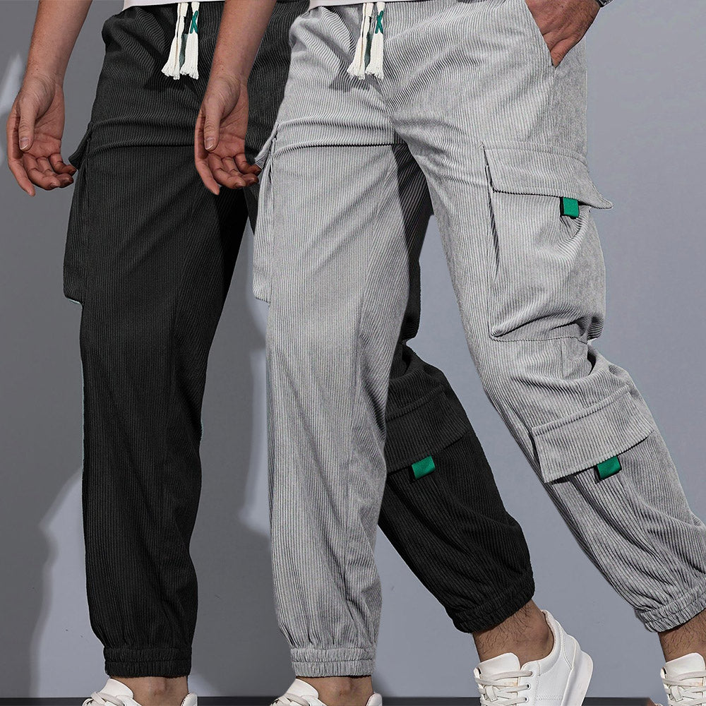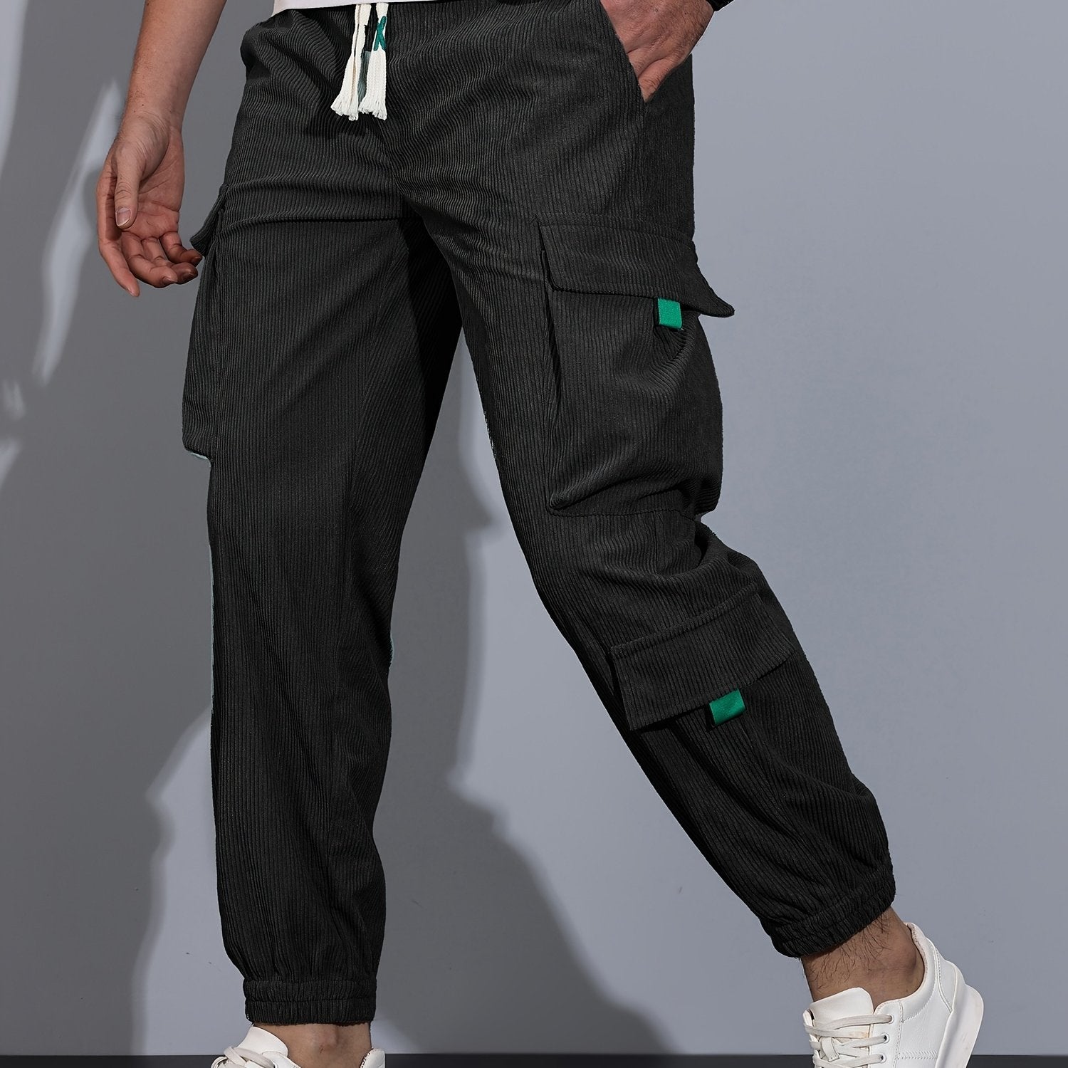 Step up your style game with cargo joggers that blend unbeatable durability with a touch of modern flair. Crafted from resilient fabric, these joggers are built to withstand the rigors of everyday life while offering a stylish twist. The knit stripes run down the sides, adding a sleek, athletic edge to the rugged design.
