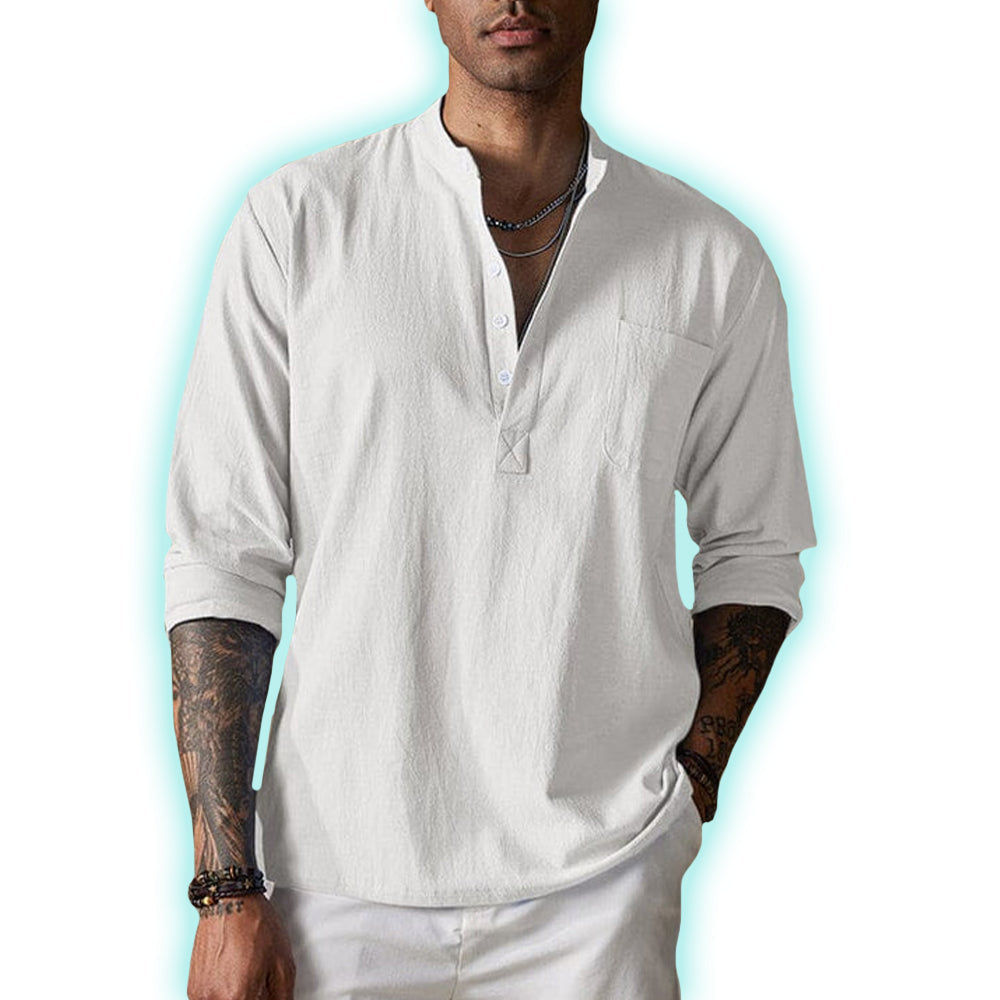 Spun from lightweight, breathable cotton-linen fabric with a rumpled texture, this spring essential boasts an incredibly soft and comfortable fit.