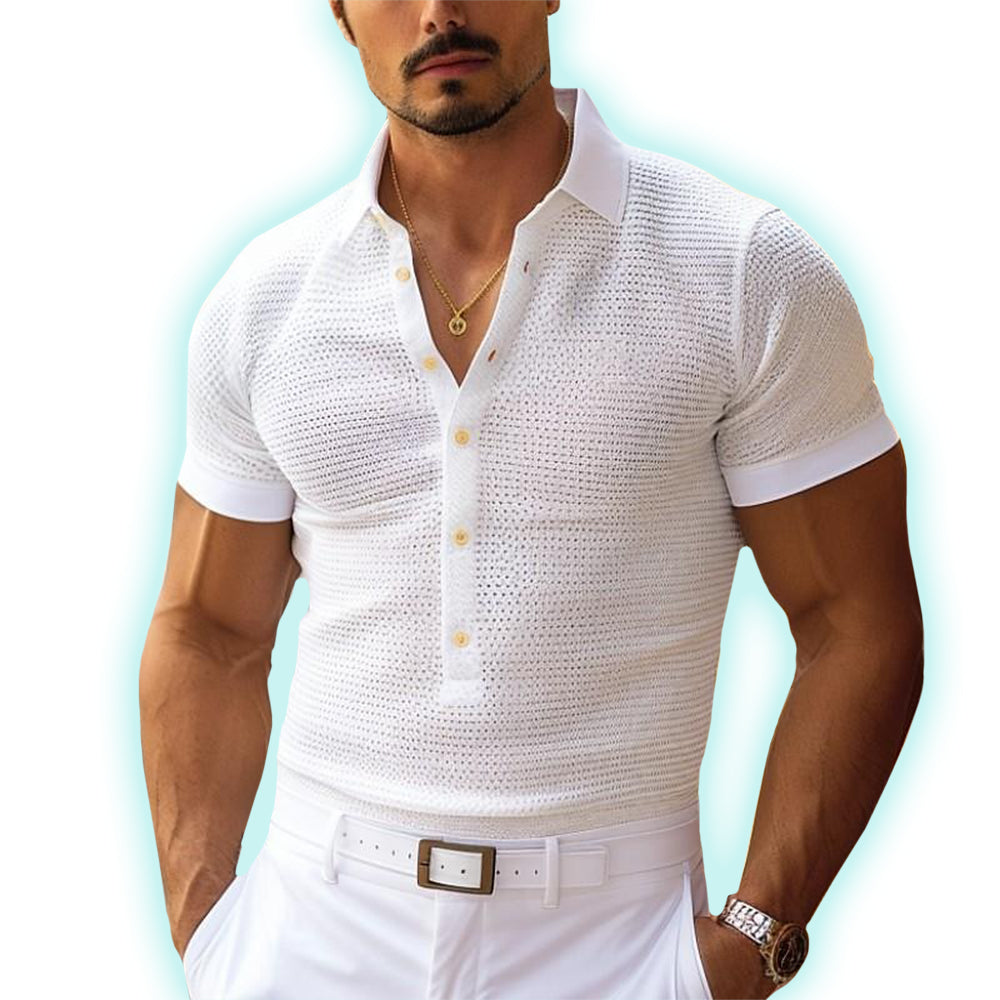 Indulge in the luxuriously smooth mercerized fabric of this casually sophisticated essential, tailored to provide both comfort and style.