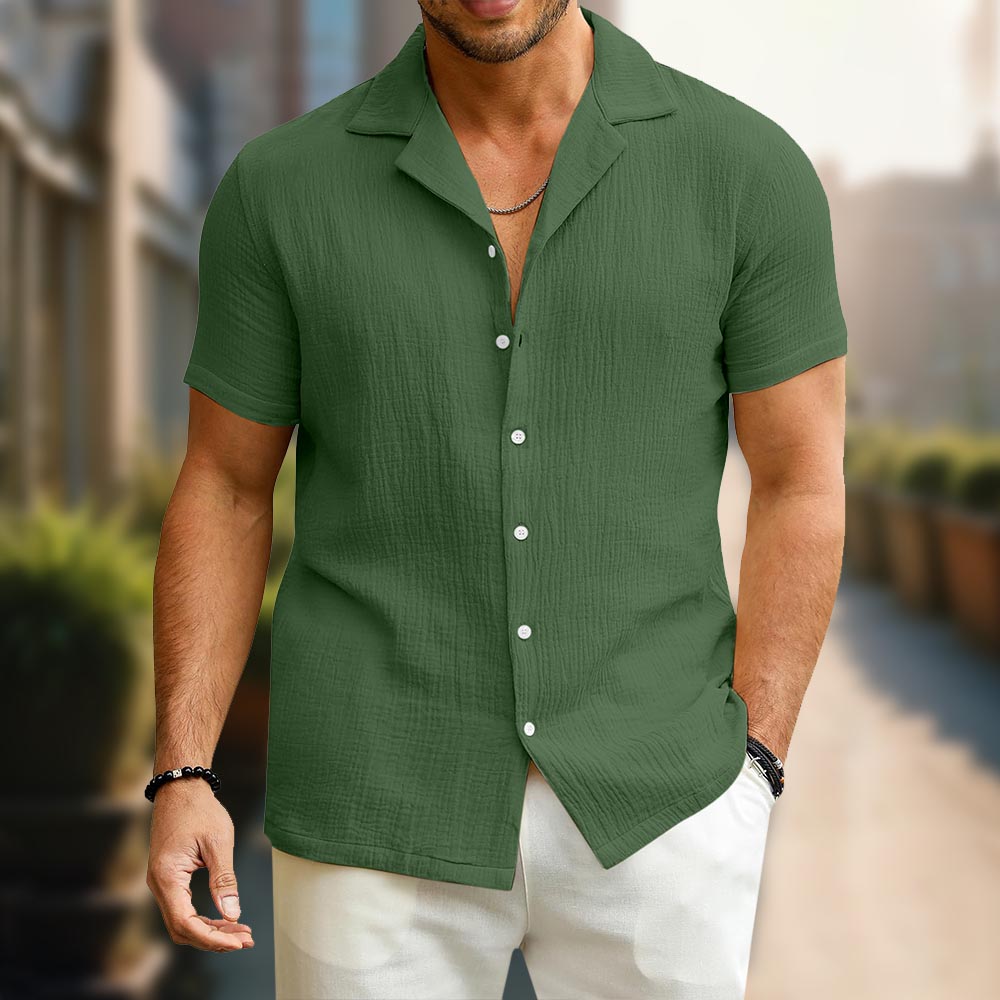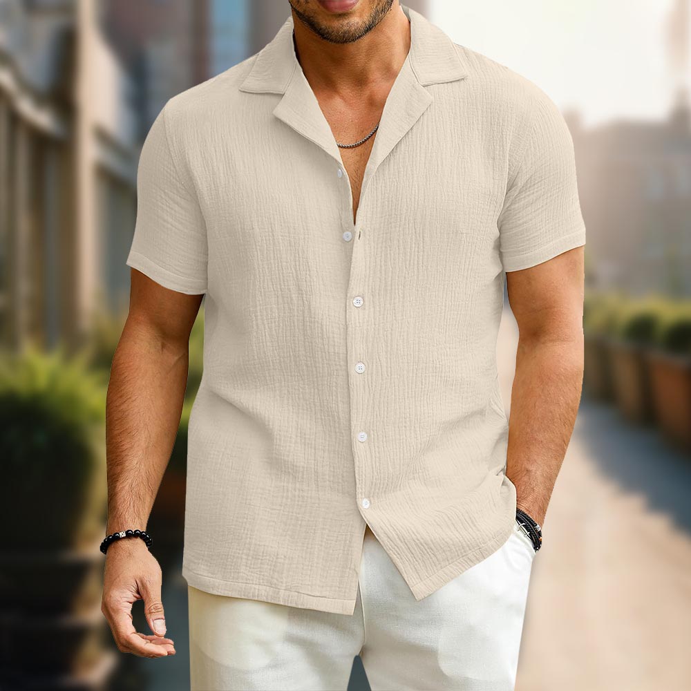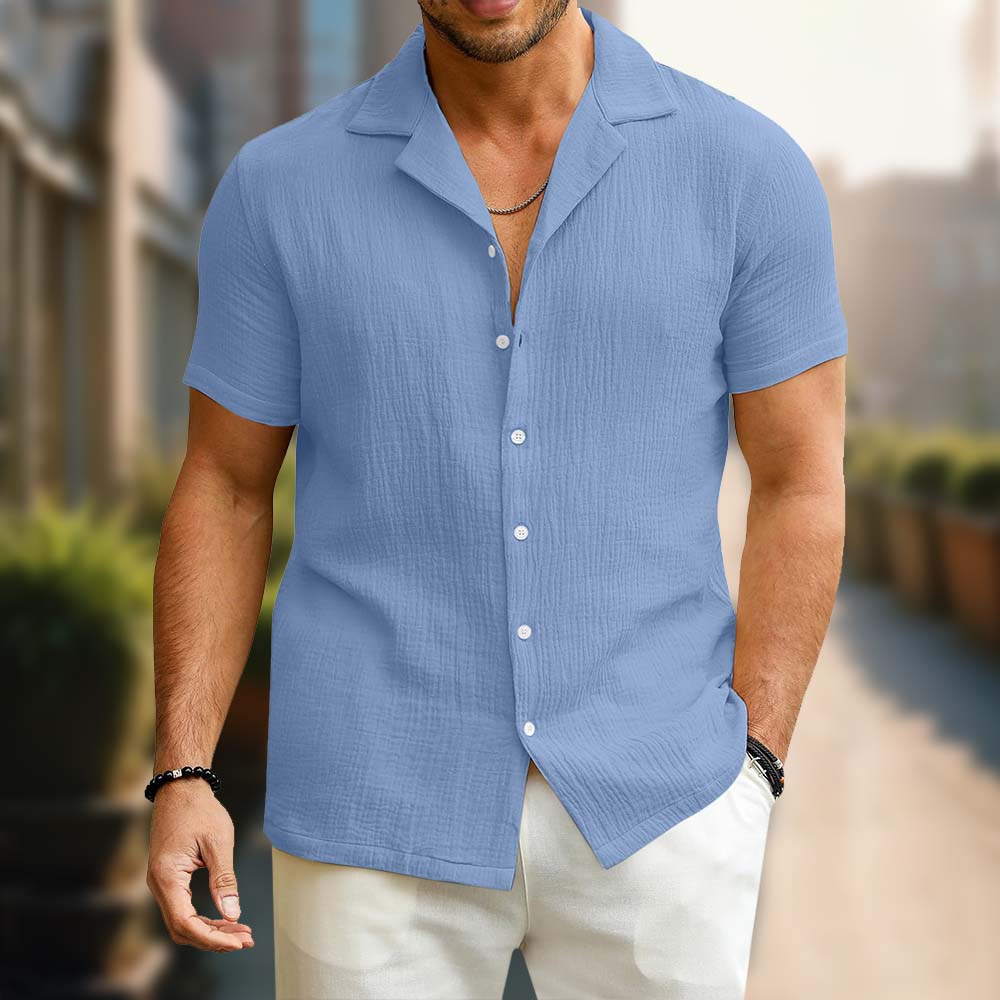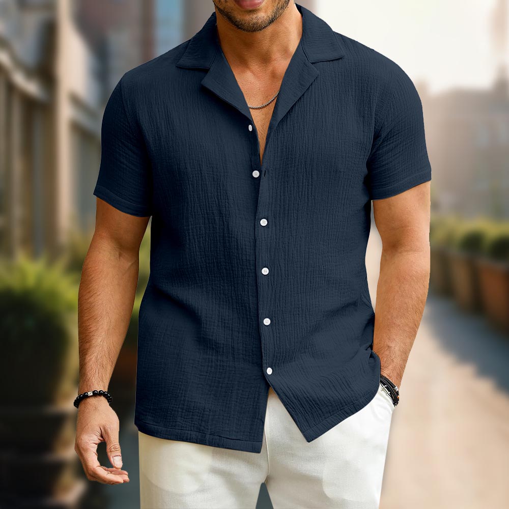Tailored with a handsome relaxed fit, this smart shirt embraces like a gentle hug, allowing freedom of movement without compromising on refinement. It drapes casually yet elegantly over the contours of the body, hinting at leisurely strolls under clear skies.