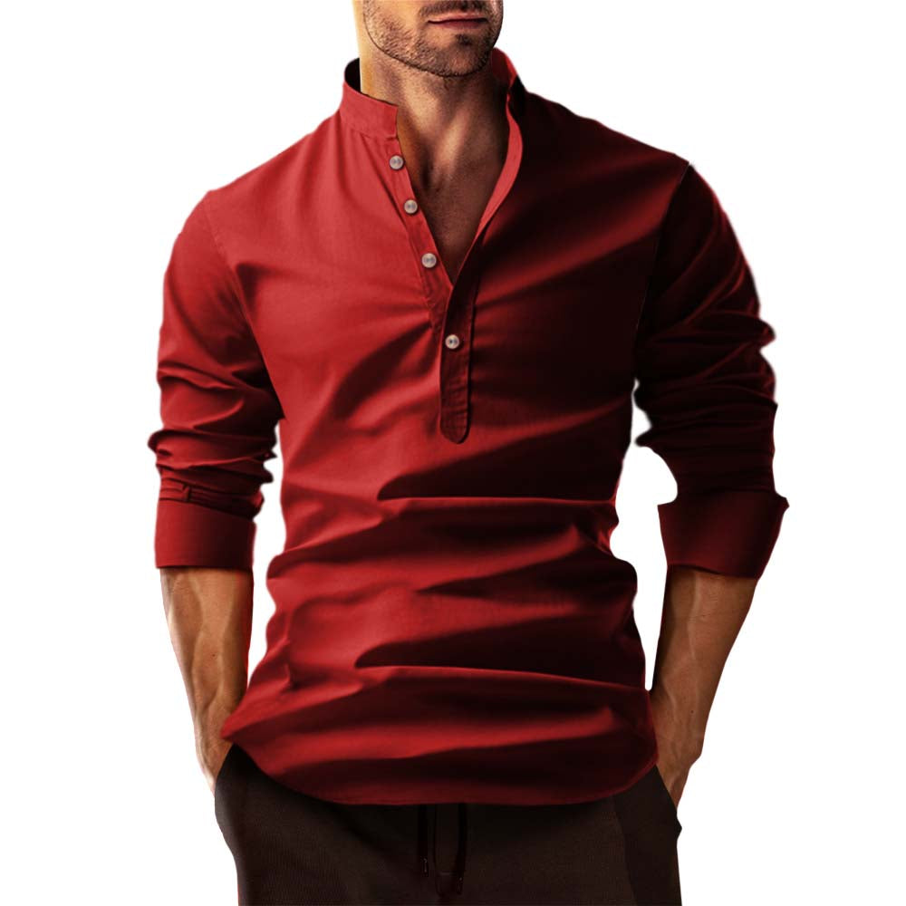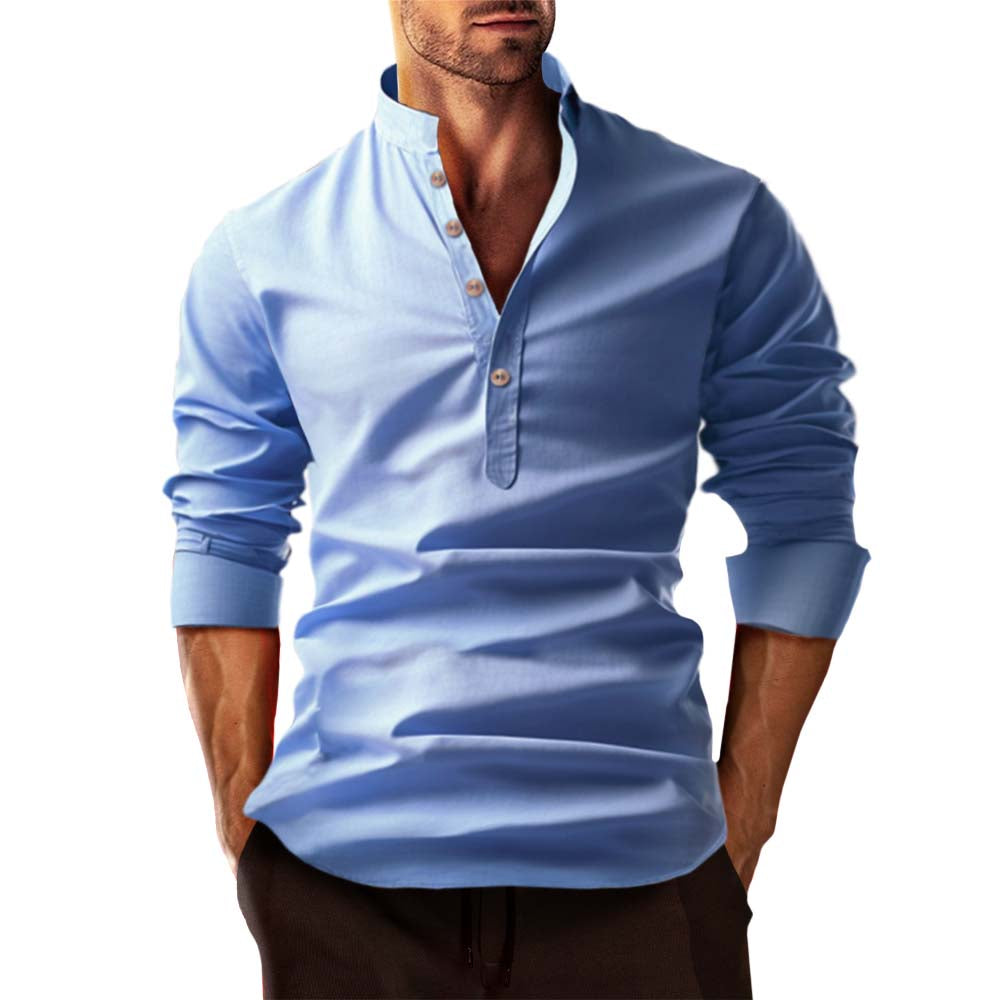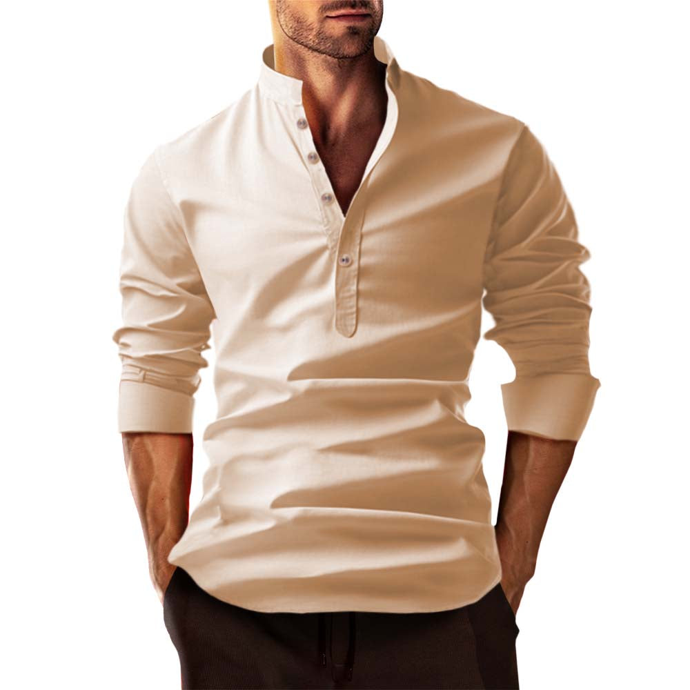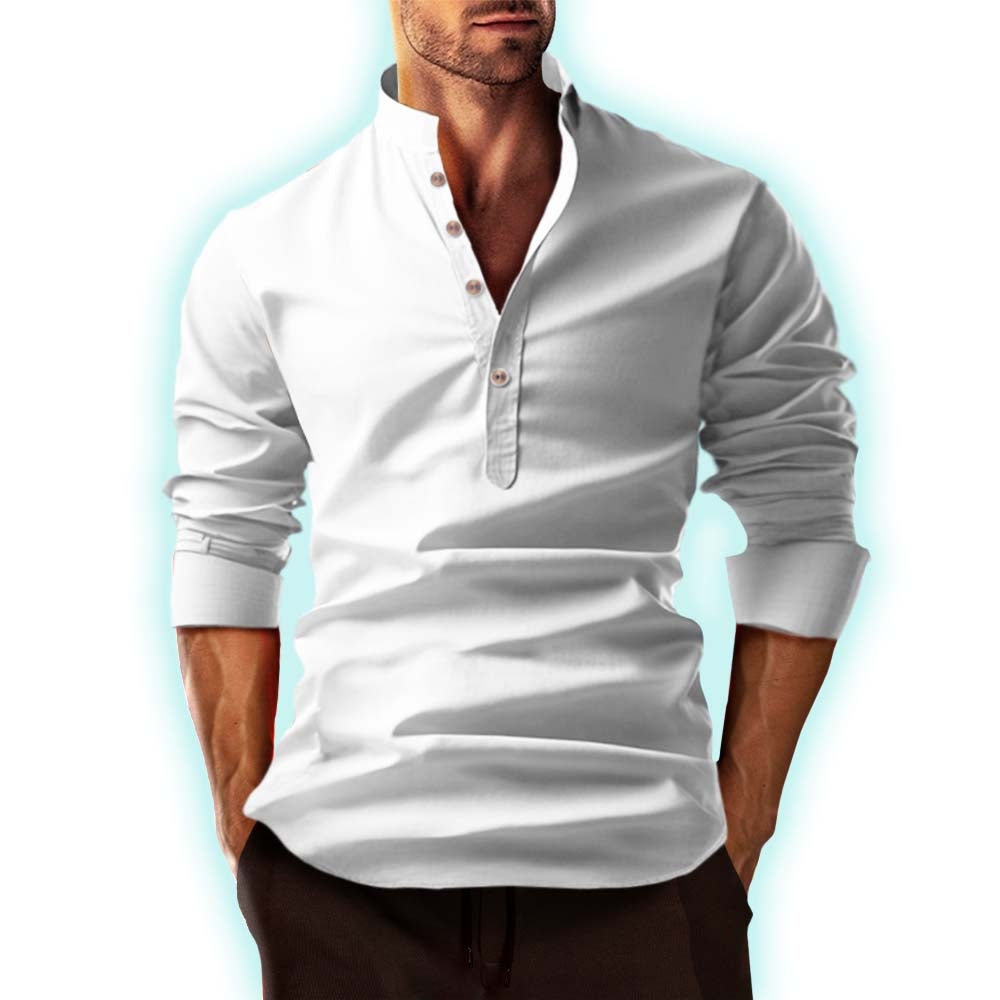 This versatile linen shirt boasts a breathable fabric and a smart button-down mandarin collar, making it a must-have in every color.